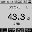 儀器可以實時測量1/1倍頻程濾波器,計算并顯示每個中心頻率點的聲壓級,儀器可以保存顯示實時數據。 |